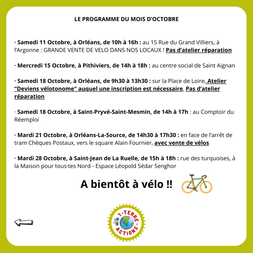 Ce samedi 24 mai 2025, c’est la fête du vélo à Orléans ! Vous retrouverez plusieurs stands et animations autour du thème de nos fidèles destriers.
